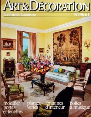 On our website are available books ART ET DECORATION [No 196] du 01/12/1976 - MODIFIER PORTES ET FENETRES - PLANTES VERTES - FONTAINES D'INTERIEUR - BOITES A MUSIQUE that make you readers do not feel bored,
